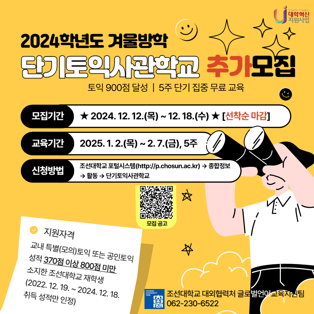 □ 모집기간: ★ 2024. 12. 12.(목) ~ 12. 18.(수) ★ [선착순 마감]