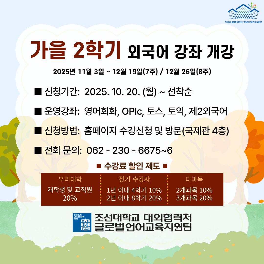*Vocabulary through pop music 강의실 Lab E -> 2107강의실로 변경 되었습니다.