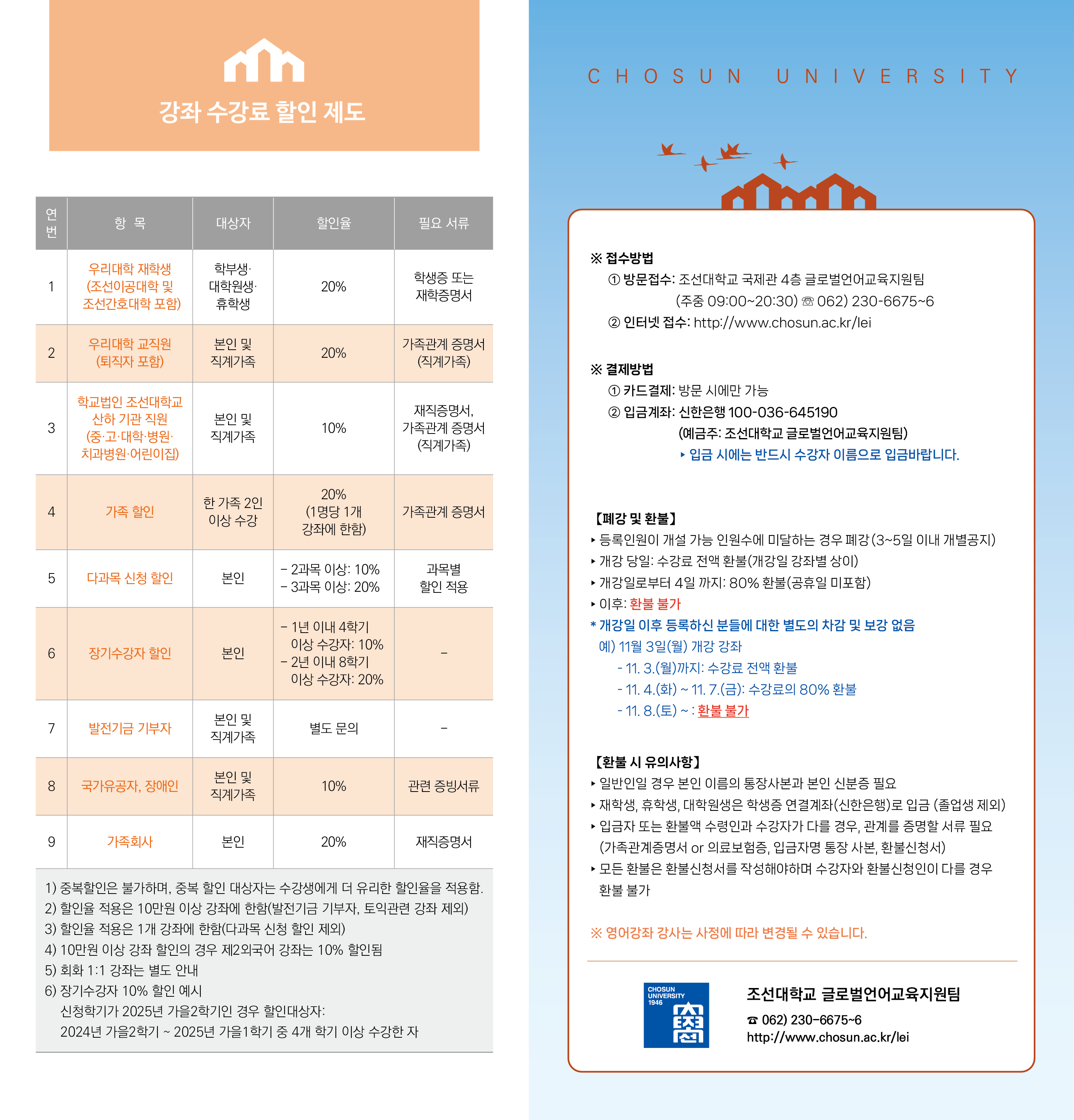 *신규 수강자분들께서는 레벨테스트 일정 참고하시어 사무실로 방문해주시면 안내 도와드리겠습니다.