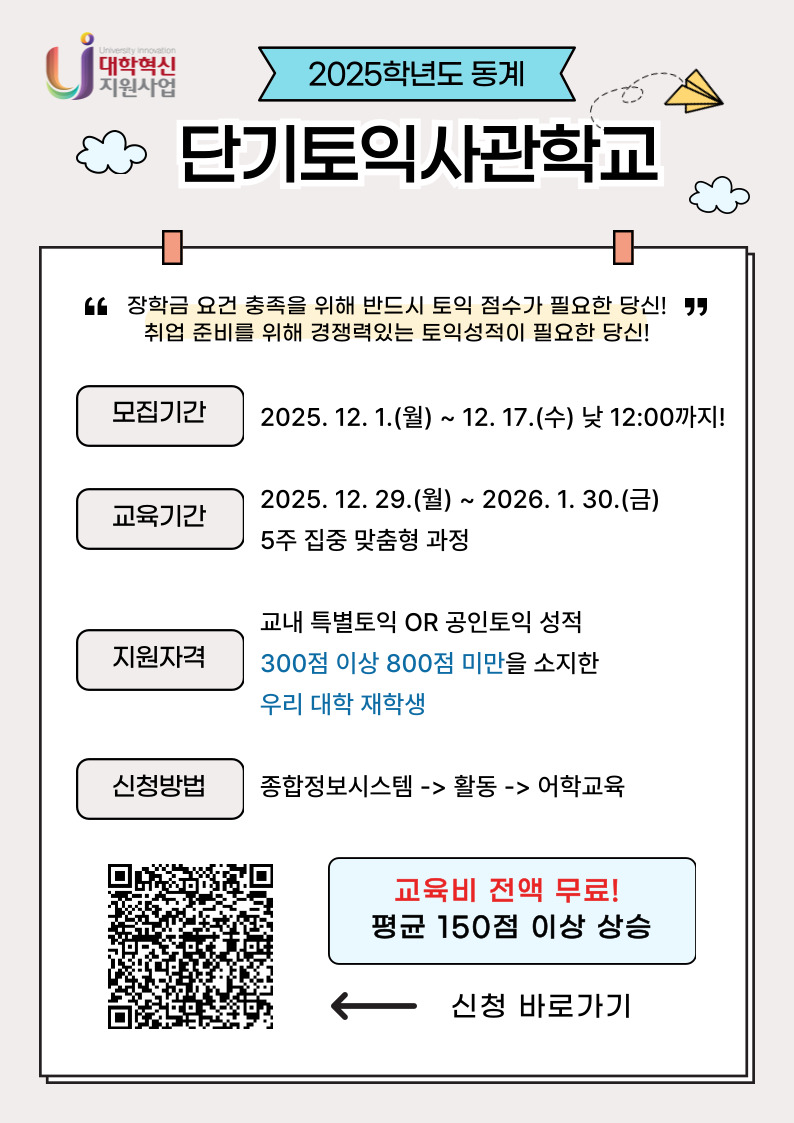 - 모집마감일(2025. 12. 18.) 기준 2년 이내의 TOEIC 성적