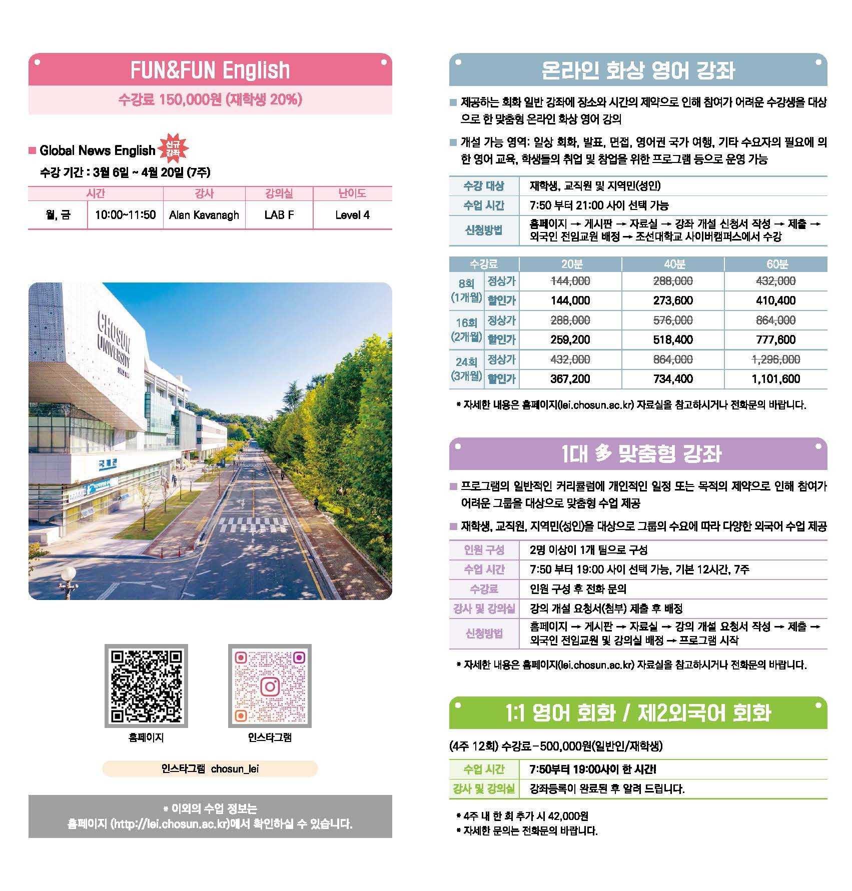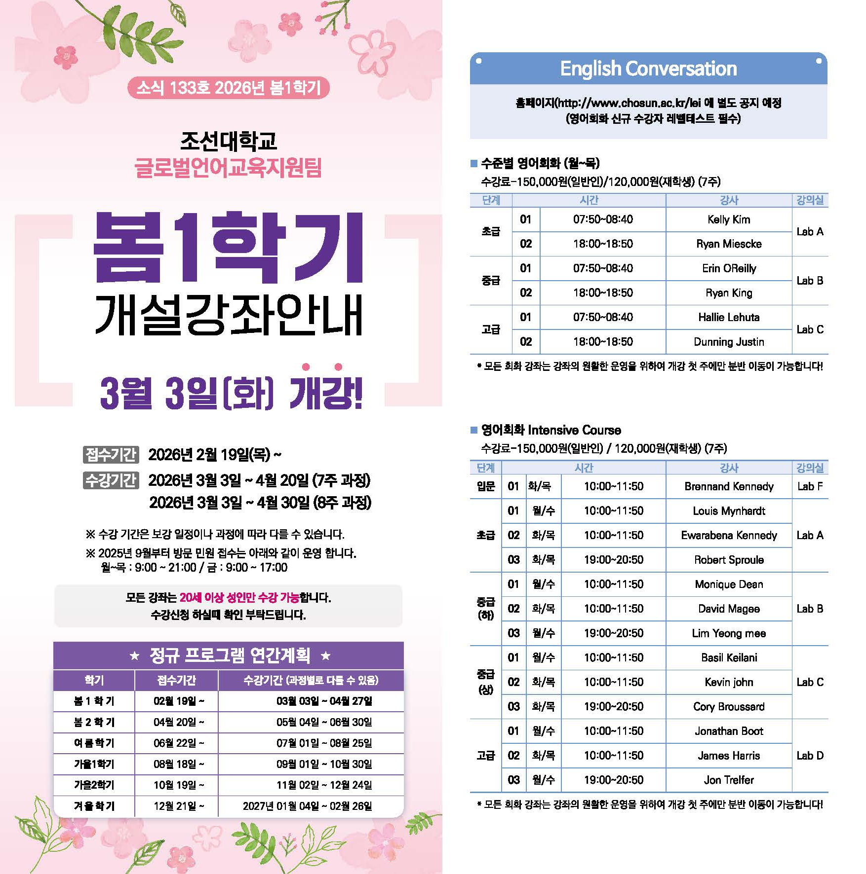 * 26학년도 봄 1학기부터 영어 회화반 교재 변경 되었습니다.